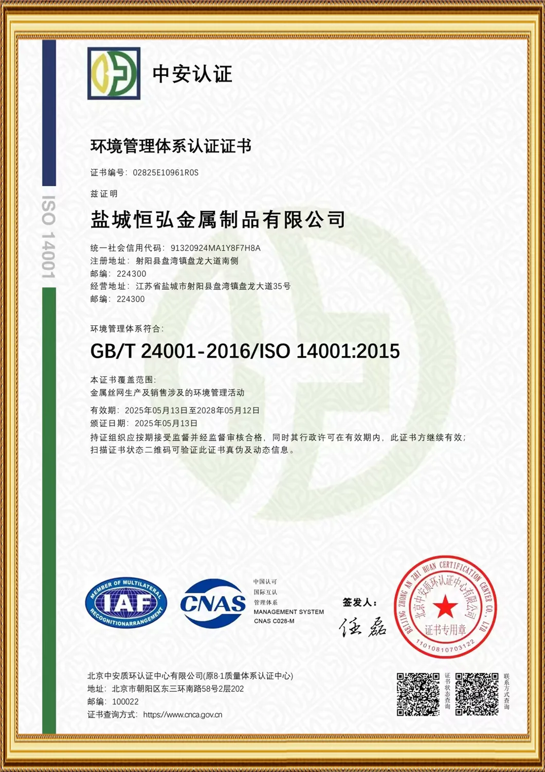 • Environmental Management System Certification