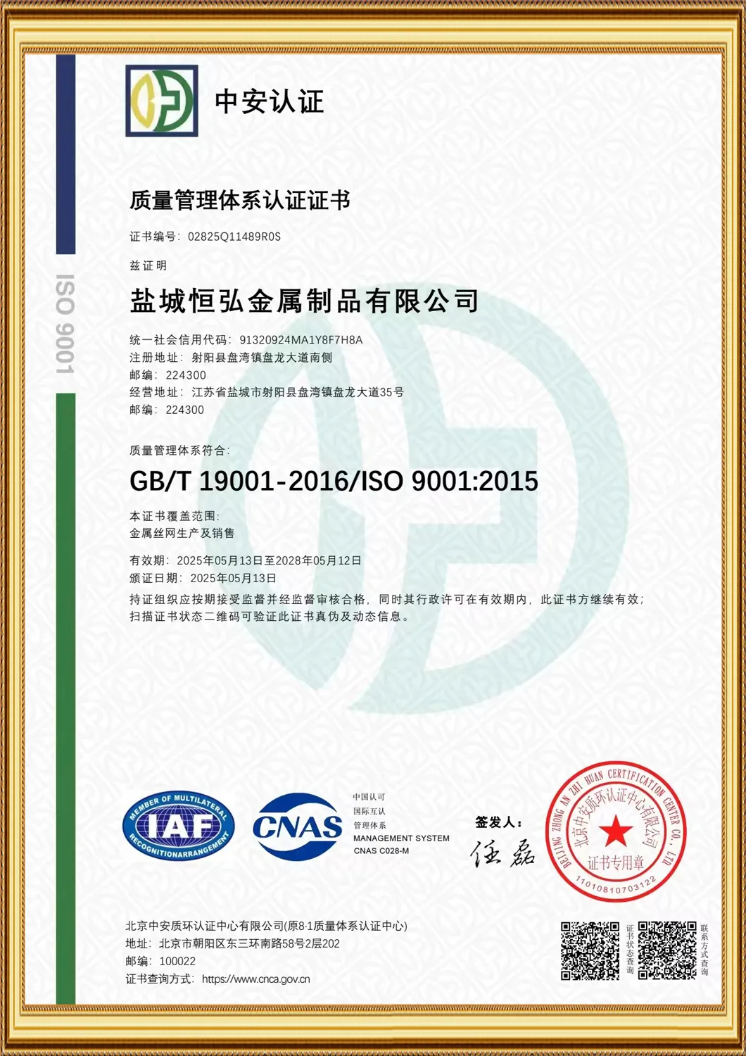 • Quality Management System Certification